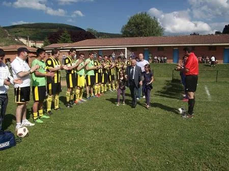 La asociación deportiva Pradoluengo Club de Fútbol, rindió un merecido homenaje a la persona del veterano directivo Jacinto Sáez Alarcia. Con la entrega de una placa conmemorativa, se quiso valorar el trabajo incansable que a favor de la institución cuasi centenaria, ha desarrollado Sáez Alarcia en torno a las labores logísticas y de cultivo de la afición por el fútbol en general y por el cuadro gualdinegro en particular. Acompañado de sus nietas, Jacinto Sáez agradeció emocionado este pequeño tributo a su labor que resume muchos años de esfuerzo y trabajo por el club de sus amores. Ha habido muchos momentos difíciles para esta institución, pero en el recuerdo quedan los mejores, como los años gloriosos del Pradoluengo en regional preferente, cuando a pesar de ser la localidad más pequeña de las que competían en las provincias de Palencia, Valladolid, Soria y Burgos, se mantuvo por varias temporadas. Por eso, el deseo de Jacinto es el de ¡¡ larga vida al Club Deportivo Pradoluentgo !!.