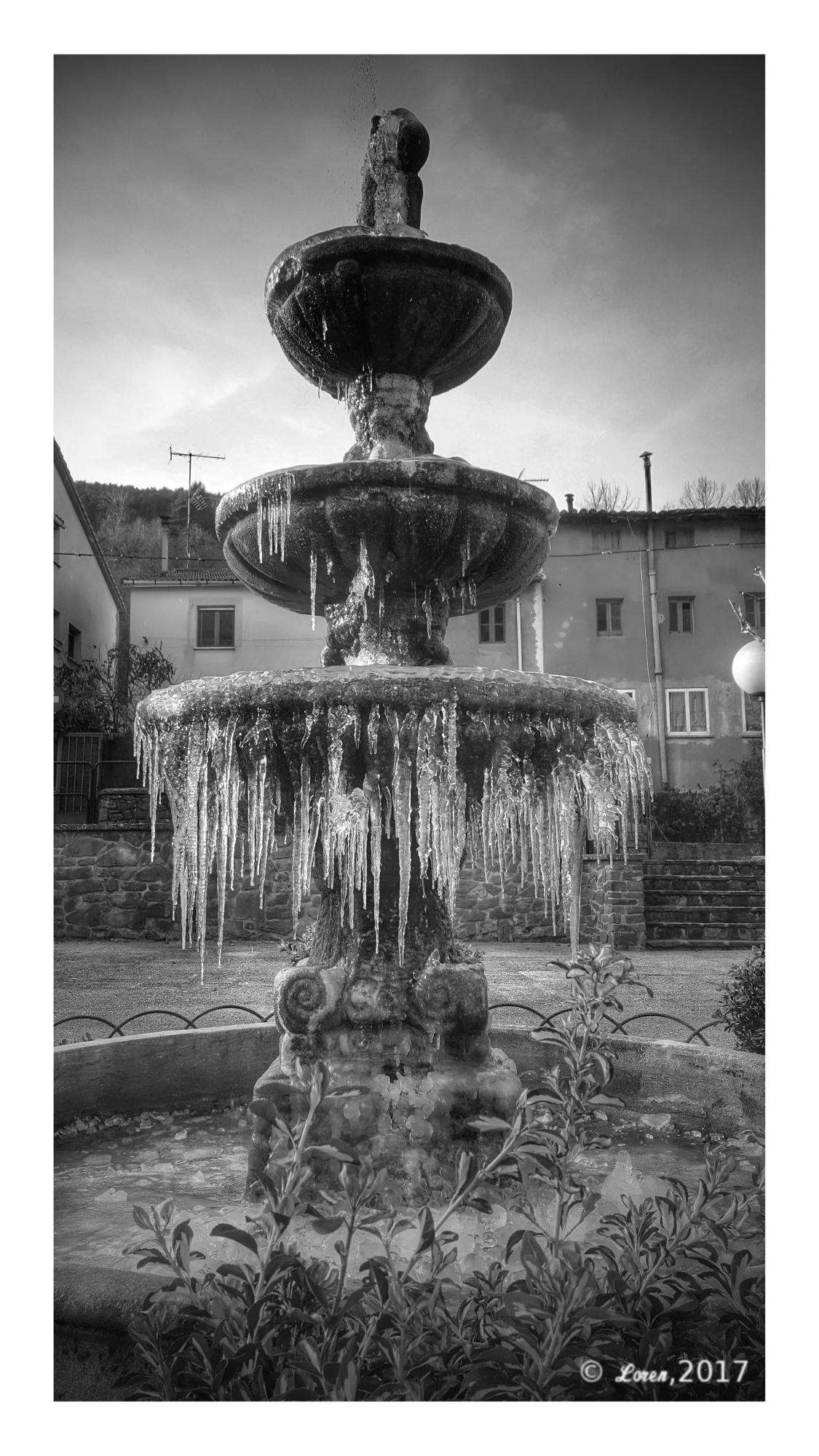 Con esta postal de la fuente de la plaza "Las Viñas" que nos dejó el frío de esta navidad,os deseamos un feliz y muy prospero año 2017.