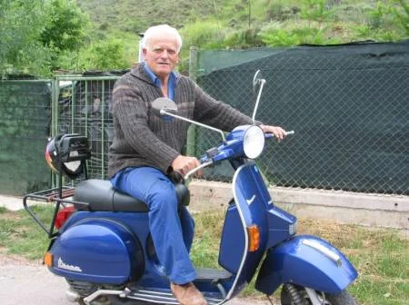 José Marcos Santamaría, albañil jubilado de 68 años, fue desdejoven un gran aficionado a todo tipo de automóviles. Nunca sufrió ninguna contingencia ni accidente desde que a los 17 años empezó a pilotar motos. En unos tiempos en los que las noticias resaltan la peligrosidad de los vehículos de dos ruedas, este pradoluenguino las defiende por la sensación de libertad que ofrecen. De joven iba desde su pueblo hasta Burgos y allí escondía su motocicleta para que no le pillasen los guardias. En aquellos años iba sin casco ni nada y acompañado de uno de los mejores canteros de la villa, el singular Santiago Acha. Los dos volvían cargados con materiales de construcción haciendo malabarismos. La primera máquina que manejaron sus manos fue una Montesa Brio de caballo y medio, que a pesar de su poca cilindrada, le permitía ir a los lugares más insospechados, de acá para allá. Tras ella vinieron una decena de motos y más de veinte coches, lo que le granjeó fama de "loco" en el pueblo según sus propias palabras. Los vecinos le criticaban por su afición al motor y decían que iba a dejar viuda a su mujer nada más casarse con ella. Con las motos, Joselín disfrutó muchas vivencias, yendo a todas las fiestas y jaranas de Burgos y La Rioja, aunque nunca tuvo ningún choque o avería de importancia. La sensación de libertad que le daban sus motos la ha seguido transmitiendo en su vida cotidiana, gracias a una finquita en la que dispone de una caseta, un pequeño horno, garaje, merendero y huerta donde pasa gran parte del tiempo. En ella planta pepinos que luego regala a los numerosos paseantes que suben por el camino de San Antonio. Joselín sigue recordando sus transportes de dos ruedas, Luber-Ren, Ducati, Puch, Lambretta y la cantidad de kilómetros recorridos, más de medio millón, también con sus coches, sobre todo con un Daulphine precioso. Buenos o malos, con todos sus vehículos se divirtió muchísimo, aunque ahora ya, más tranquilo, prefiere merendar enfrente de Zubiaga, aunque es habitual verle paseando por Pradoluengo con su Vespa. La moto, que no falte.